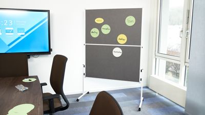Mit dem doppelseitigen Filzbezug maximieren Sie Ihre Arbeitsfläche. Ob Sie Ideen sammeln oder Konzepte strukturieren – diese Moderationswand erlaubt es Ihnen, Papier, Notizen oder Karten direkt zu pinnen. Die stabile Konstruktion aus pulverbeschichtetem Aluminium und Stahl sorgt dabei für Zuverlässigkeit, ohne Kompromisse bei der Handhabung.