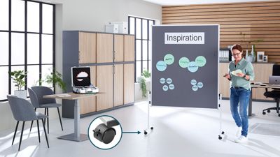 Mit den feststellbaren Rollen im 4er-Set ist die Legamaster ECONOMY Moderationswand mühelos von Raum zu Raum bewegbar. Trotz ihrer stabilen Bauweise bleibt sie leicht und kann problemlos von einer Person montiert werden – so ist sie schnell einsatzbereit und flexibel einsetzbar.
